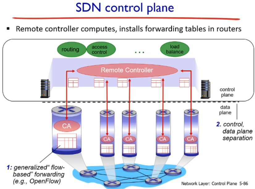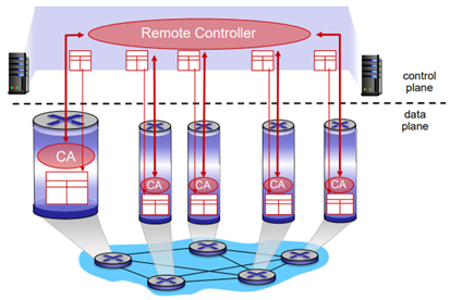 하나의 logical하게 중앙화된 Remote Controller에서 모든 계산을 해준다. 각자 있던 control plane을 떼다가 한 곳에 몰아 넣었다고 보면된다. 그러면 CA가 Remote Controller하고 이야기 해서 계산된 결과만 받아오면 된다.