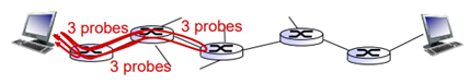 UDP로 보내는데, 일단 맨 처음 TTL=1로 찍어서 보낸다. TTL은 라우터 한번만 건너겠다는 뜻이다. 그러면 그 한 번에 담긴 시간과 정보들이 있다. 그리고 TTL=2로 찍어서 보낸다. 라우터를 두번 건너띄게 되고, 건너갈 때마다 각각에 대한 측정된 delay, 시간을 종합하면 전체 경로, node에 대한 정보를 수집할 수 있다. 그 때 사용하는 것이 ICMP로 하는 것이다.
