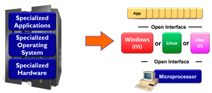 - Analogy of Traditional router = mainframe computer (control plane and data plane are built in one node by one company)