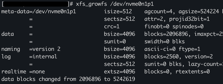 xfs 파일시스템 xfs_growfs /dev/nvme0n1p1더보기xfs_growfs /dev/nvme0n1p1