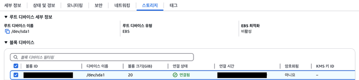 1. AWS 콘솔에서 디스크 볼륨 확장 (8GiB → 20GiB)