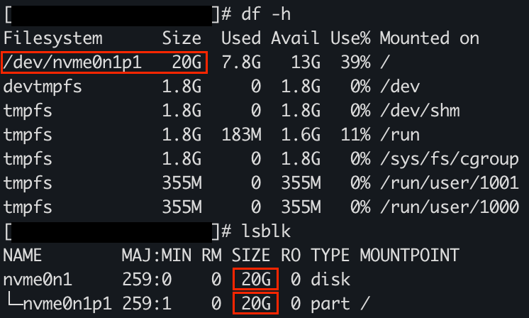 /dev/nvme0n1p1 파티션 Size 값이 확장된 디스크 볼륨와 일치더보기df -h