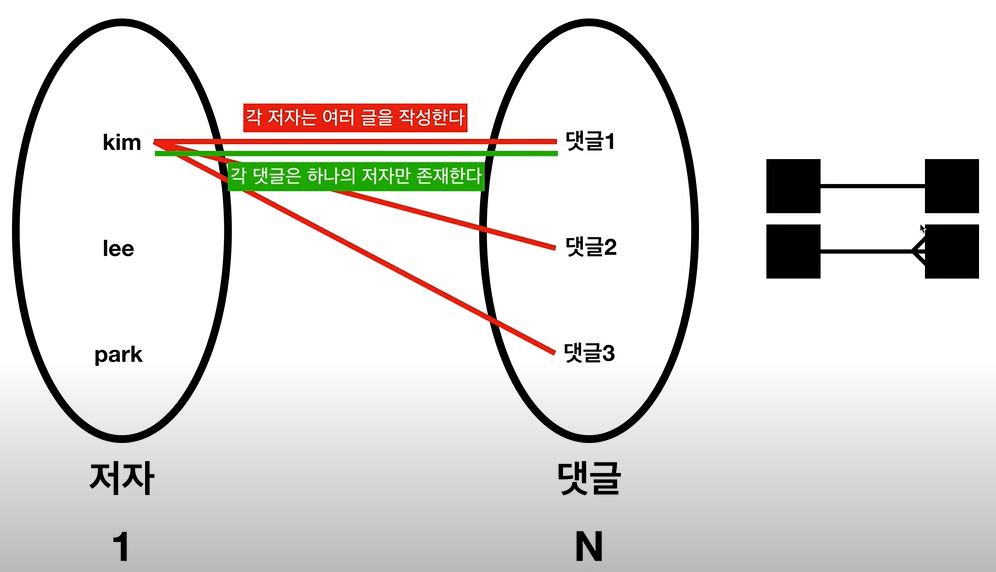 댓글은 선택, 댓글에게 저자나 게시글은 필수 + 1:N 관계