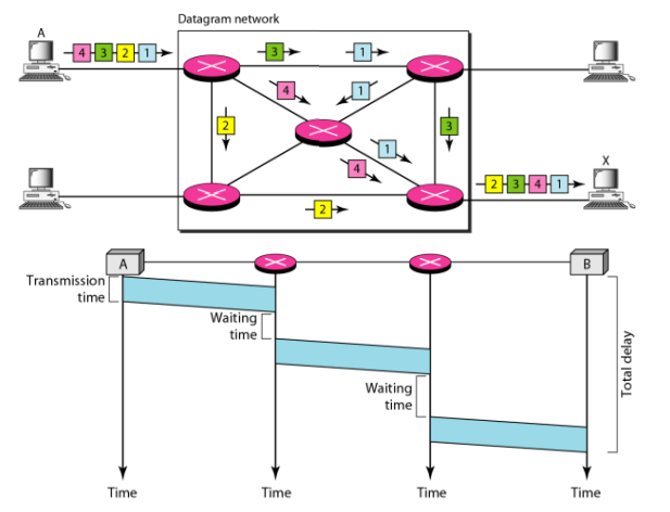 - 2. 각 패킷마다 중간노드(버퍼)가 개별적으로 라우팅 > Out-of-order delivery