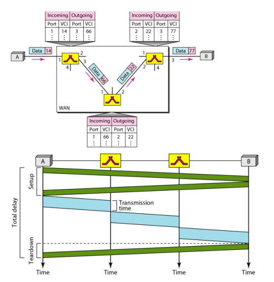 - Switching: TX가 전송한 메시지가 C.S wan을 지나갈 때, 임의의 한개의 네트워크 노드의 incomming link에서 outgoing link로 전송되는것