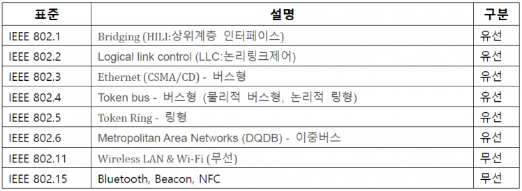 - Ad-hoc network: ap가 없는 BSS => 각 stantion끼리 직접 데이터 주고받을 때 사용(ex. 에어드롭)