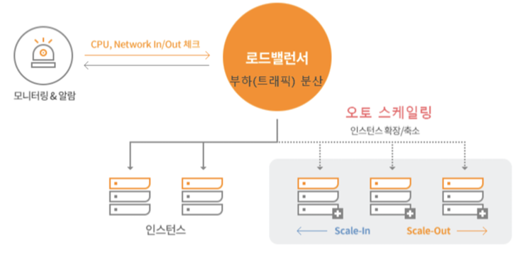 스케일 인이란 더 많은 인스턴스를 추가하여 전체 시스템의 용량을 늘리는 방식으로, auto scaling이 지원하는 방식이다.