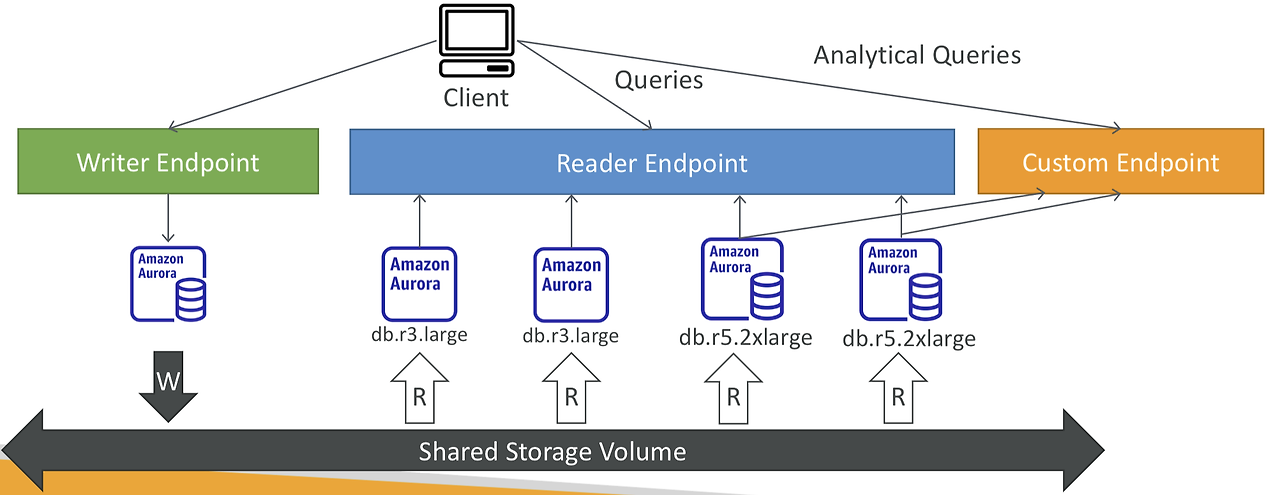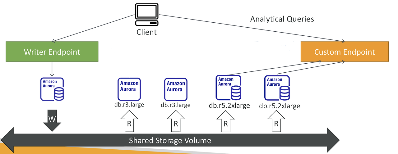 - 일부 Aurora 인스턴스를 사용자 지정 엔드포인트로 정의할 수 있음.