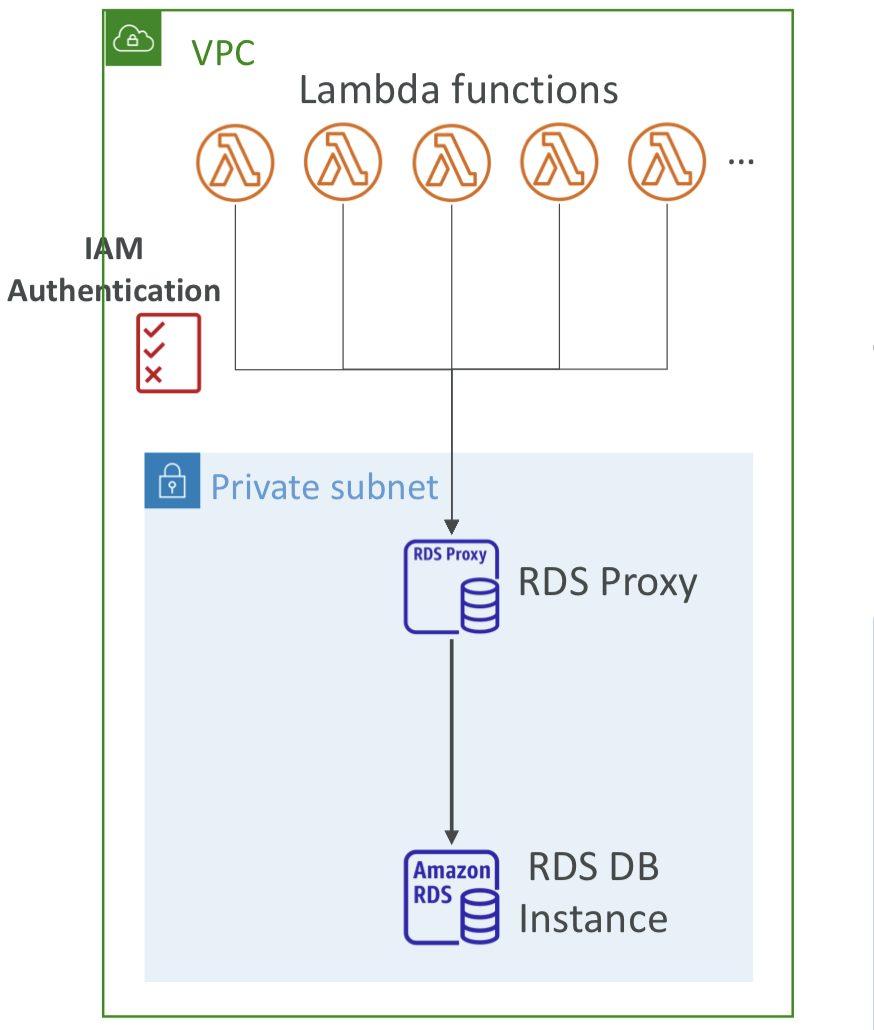 - 애플리케이션이 데이터베이스 내에서 데이터베이스 연결 풀을 형성하고 공유할 수 있음. (애플리케이션을 RDS DB 인스턴스에 일일이 연결하는 대신 프록시에 연결하면 프록시가 하나의 풀에 연결을 모아서 RDS DB 인스턴스로 연결함)
